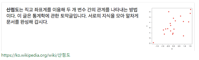 산점도를 이용하면 두 변수간의 직선적인 관계를 대략적으로 파악은 가능하지만, 두 변수 사이의 관계를 어떠한 수치로 표현하지는 않아요. 그렇기에 우리는 두 변수 간의 관계를 수치로 표현하기 위해 공분산 및 상관계수를 이용합니다.