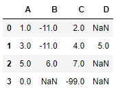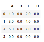 df = pd.DataFrame([[1, np.nan, 2, np.nan],