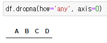 위 코드를 실행하면 아래와 같은 빈 데이터프레임이 나오죠. 모든 행에는 NaN이 하나 이상 존재하기 때문 입니다.